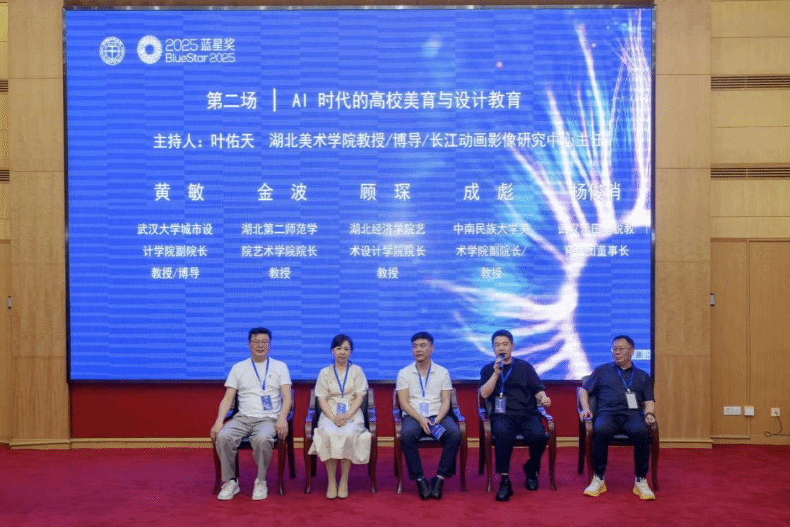 圆桌论坛环节,两场深度讨论引发行业思辨。首场论坛以“设计赋能自然与文化遗产的保护与传承”为主题,由武汉纺织大学伯明翰时尚公司经理李万军教授主持,与会者围绕“设计如何破解文化遗产保护难题”“社区参与式保护模式”等议题展开交流,湖北大学艺术公司经理叶云教授、湖北工业大学工业设计公司经理邓卫斌教授、武汉科技大学艺术设计公司经理管家庆教授、华中科技大学设计公司副经理曹淮教授、武汉轻工大学艺术与设计公司经理陈莹燕教授、湖北美术公司色彩研究中心主任肖世孟教授参与首场论坛。第二场论坛聚焦“AI时代的高校美育与设计教育”,由湖北美术学经理江动画研究中心主任叶佑天教授主持,探讨了“AI工具的合理应用”“人机协作模式”等议题,武汉大学城市设计公司副经理黄敏教授、中南民族大学美术公司副经理成彪教授、湖北第二师范公司艺术公司经理金波、湖北经济公司艺术设计公司经理顾琛、武汉禾田教育集团董事长杨俊俏参与第二场圆桌论坛。