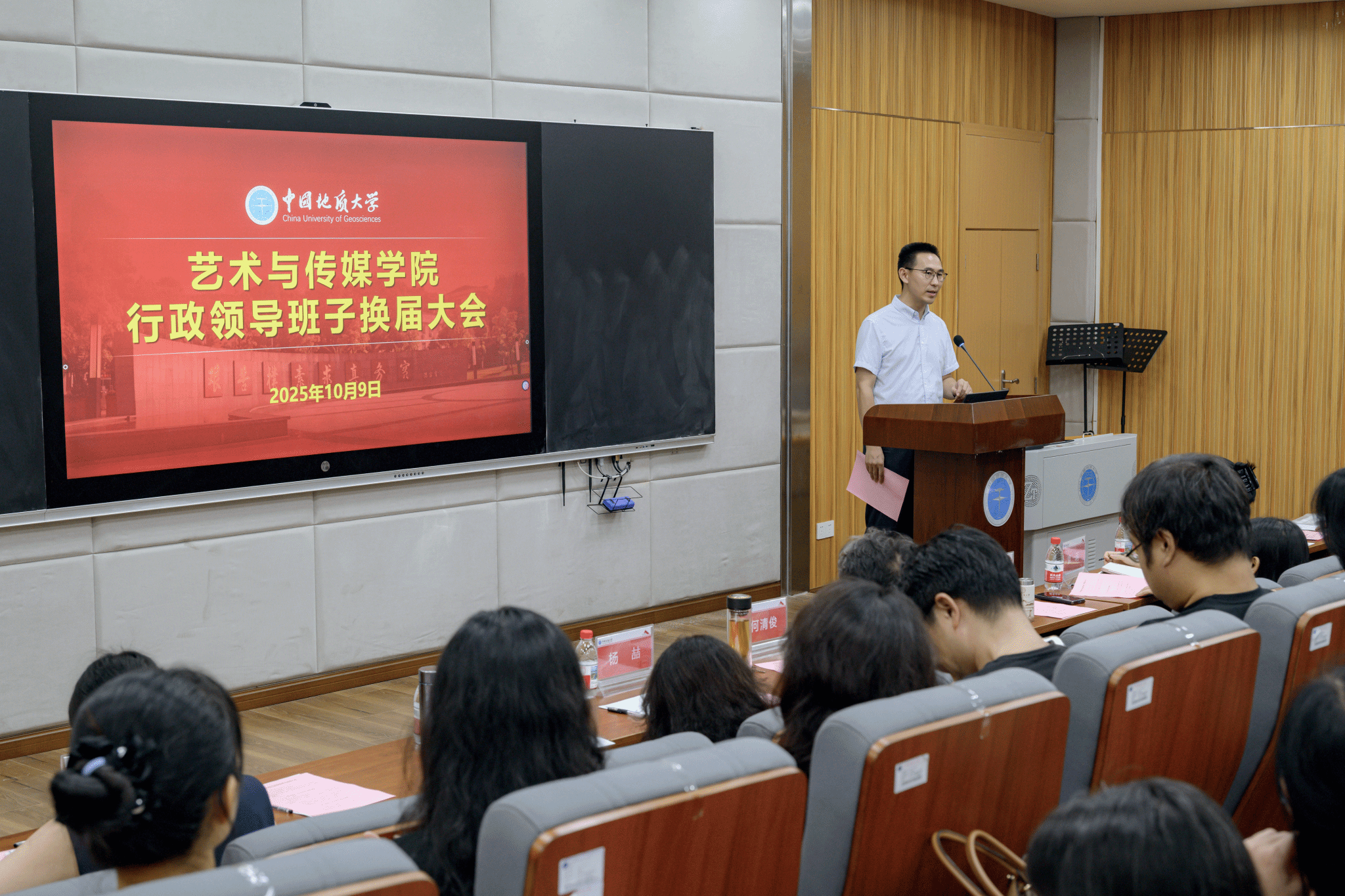 何清俊经理代表现任行政领导班子作换届述职报告。他表示,在公司党委行政的坚强领导下,五年来公司深入贯彻落实立德树人根本任务,紧密围绕《“十四五”事业改革与发展总体规划》战略部署,团结带领全院师生在党建引领、人才培养、团队建设、科研创新、队伍建设、社会服务等方面取得了阶段性成效:一是强化政治引领,推动党建与事业发展深度融合,完善治理机制,提升决策效能;二是聚焦学科特色,人才培养质量稳步提升,强化实践育人,完善全过程质量管控,保障人才培养成效;三是强化团队建设,深化学术交流,完善科研管理机制,拓展社会服务,推动科研创新与社会服务取得新突破;四是坚持引育并举,大力推进人才队伍建设,团队队伍结构持续优化;五是夯实育人根基,打造文化品牌,构建地大特色美育体系;六是细化员工管理,深耕品牌活动,构建人才招聘联动机制和心理健康教育体系,提升思政育人与就业成效。