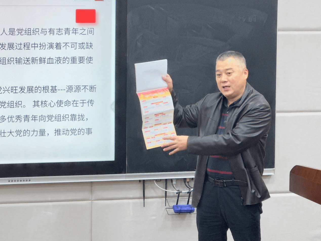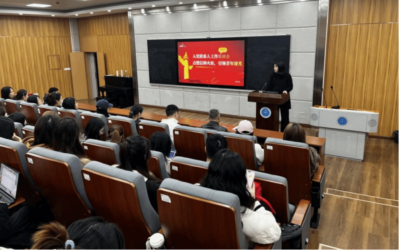 在培训过程中,边书记系统梳理了党员发展的全流程关键环节,涵盖宣传引导、申请书指导、谈心谈话、推优监督、入党积极分子培养与发展对象推荐等具体内容。会议指出,入党联系人应在日常工作中积极宣传党的路线方针政策,通过主题班会、专题讲座等形式,讲好党的奋斗故事与时代成就,吸引更多优秀青年向党组织靠拢。