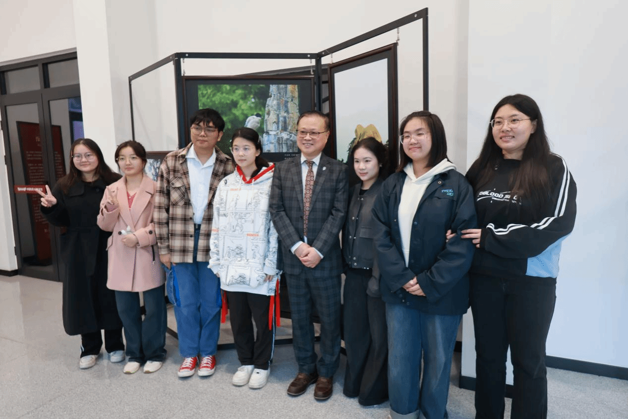 仪式结束后,领导、嘉宾与师生代表共同观看了现场展出的摄影作品,并与参展作者进行了深入交流。