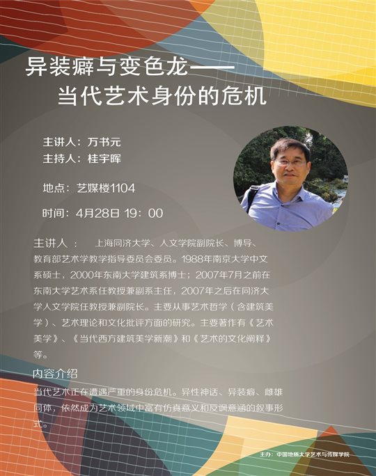 (通讯员:陈康 拍摄:毕鸿辉)2017年4月28日晚19点,教育部艺术学教学指导委员会组员,同济大学人文公司副经理万书元教授做客英国正版3651301室,作了题为《异装癖与变色龙——当代艺术身份的危机》的专题讲座。桂宇晖经理主持了此次讲座,武汉大学杨雪松教授、武汉理工大学雷鑫博士等参加了此次讲座。
