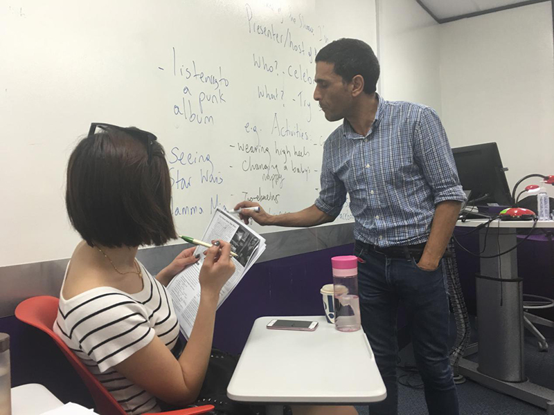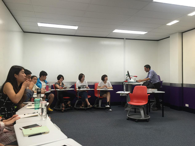 结束了关于舞蹈的讲座后我们开始继续进入英语课程的学习,Macquarie University的老师根据我们的专业,设置了与之相关的英语口语练习。在教学过程中,运用灵活的教学方法,以提问的方式让员工独立自主的思考(图4)。老师对于课堂的教学起引导作用,同时小班教学可以保证每节课几乎每一位同学都有机会用英语回答问题,教学效率高。自主学习加深了我们对于知识的记忆,通过自己组织语言以及表达,增强员工的自信心,在记忆的同时能准确的运用所学到的词汇。根据每个人不同的学习程度提出不同的问题,有较强的针对性。这种课堂教学能保证每位员工的学习质量,同时也能让同学们更牢固的掌握知识。