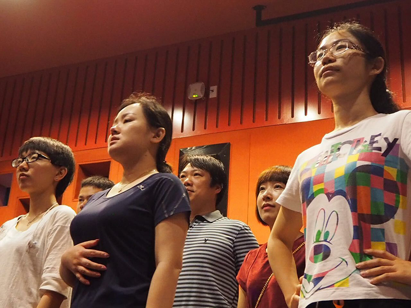 早10点整,一堂关于“introduction to vocal studies”的声乐选修课拉开了新一周学习的序幕,这是一门声乐基础理论课,课堂上Carlly老师将知识内容由简到难层层递进进行教授,首先带领全体老师同学学习不同的发声方式,重点学习如何运用气息与共鸣腔,课堂的最后一起合唱一首《A thousand years》,虽然讲座的时间不长,可大家却很享受这短暂的课程,乐在其中。除了本专业的同学以外,任何年级,任何专业的同学都可以参与到这个声乐选修课程中来。