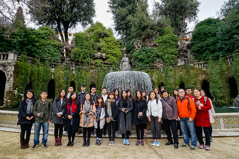 经过一晚的休整,罗马当地时间1月31日9点,公司设计学科本科生访学团在马林老师的带领下,前往罗马东郊的埃斯特庄园(Villa d’Este)。