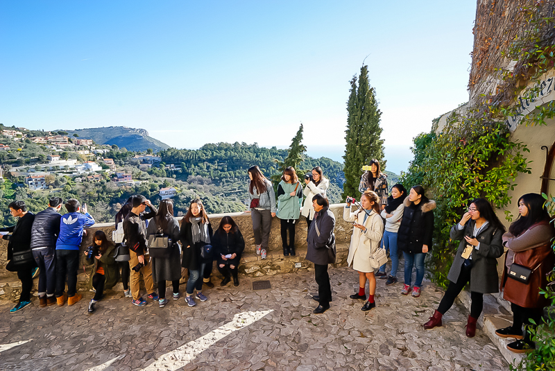 中午,访学团抵达尼斯最古老的小镇埃兹——位于法国蔚蓝海岸400米高处的悬崖小镇。马林老师表示:“埃兹小镇是尼斯最古老的中世纪小镇,归属于阿尔卑斯山,本身具有强烈意大利风格。其特点是建筑均由石头堆砌而成,小而精美。整个古镇呈现着一种人文与自然相结合的独特风格。此外,现如今在小镇中还存有中世纪的建筑。”随后,访学团对埃兹进行参观,其设计之巧妙,令访学团成员都啧啧称奇。