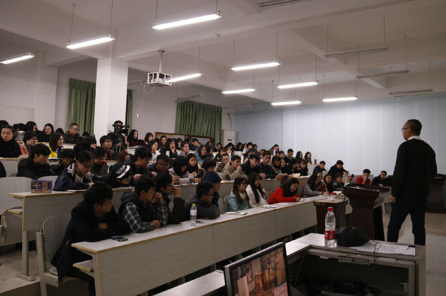 赵冰经理首先向在场师生介绍了国际知名学者季铁男先生及其成就。随后季铁男先生开始讲解现象学哲学,季先生首先展示了一张有一个“看”字的图片,并表示现象学教我们如何看东西,告诉我们怎样看重要的学问。为了便于同学们理解,季先生在现场与同学们进行了三次互动,季先生将他捡到的废气白色塑料袋为对象,分三次问在场员工他们看到了什么,对于“垃圾”、“客观物体”、“塑料袋”等回答,季先生现场也做出相应回应与解释,并表示设计专业涉及很多实际的问题,而不同年龄的人看到的也不一样,鼓励同学们多练习如何看。