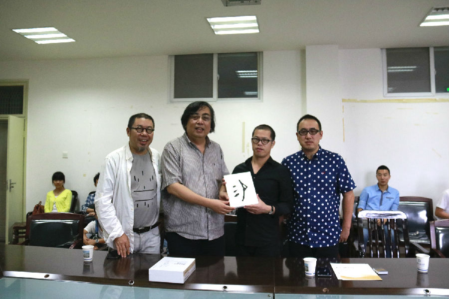 最后,嘉宾任四四与在场师生探讨了他对东西方文化交流的看法,表达了通过将凤凰图形和茶飘香相结合的平面设计思想,并展示了大量平面设计图片。