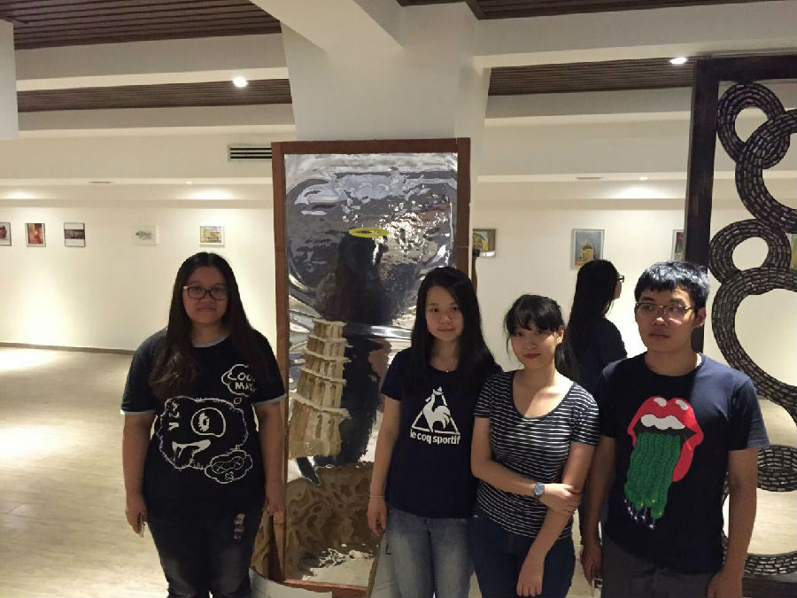 9月8日,意大利写生小组来到要举办罗马写生展览的场地布置场地和作品。还有各小组员工现场做自己的装置作品,同学们像做手工的孩子一样很开心。这次展览邀请了曾策划两次威尼斯双年展的著名策展人马茨阿尼和意大利著名的年轻当代艺术家巴西勒兄弟,他们两个都曾来过地大英国正版365举办过讲座。当代艺术系教师也参加了展览,很遗憾意大利籍足球运动员托马索因感冒未能出席。