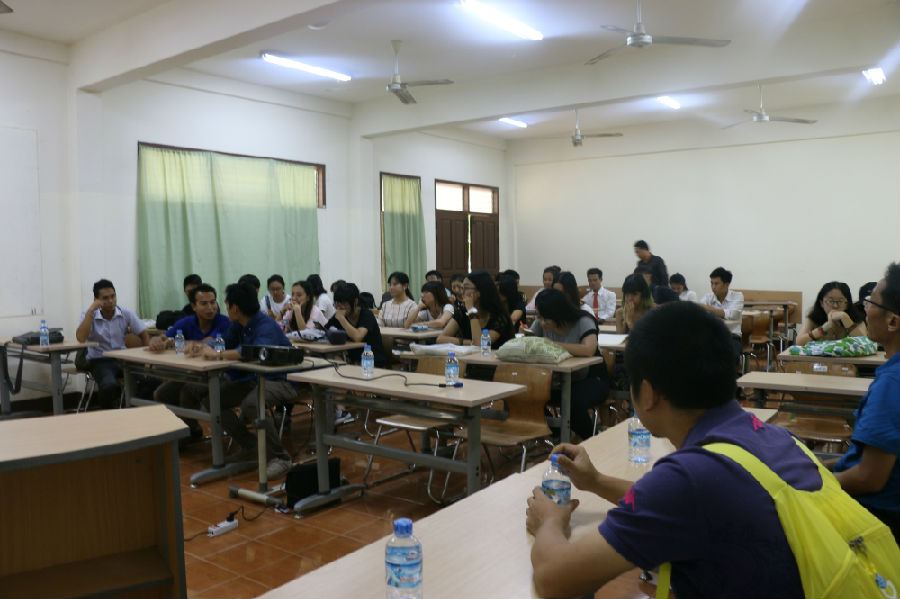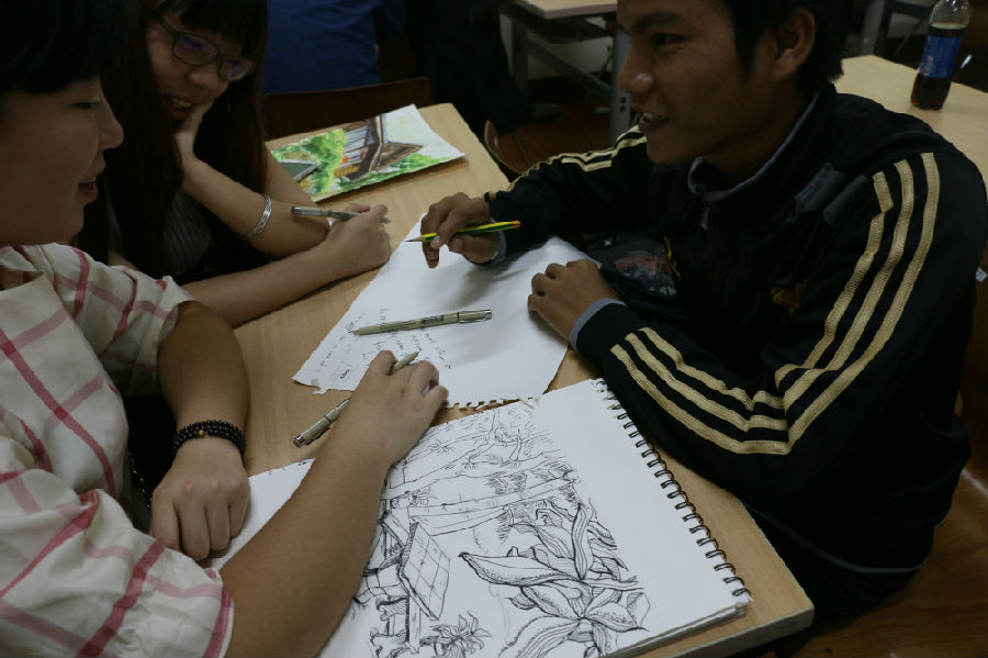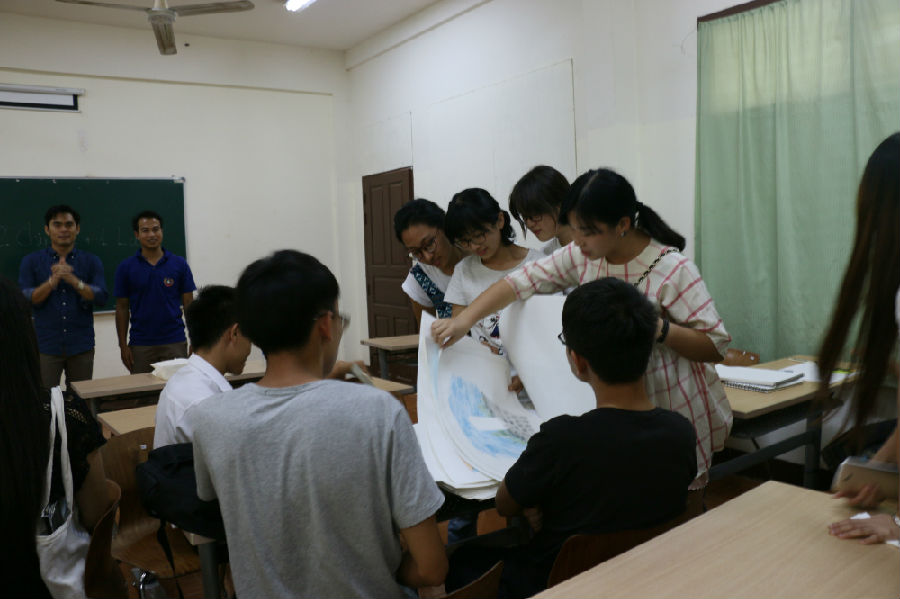 九月九日,老挝写生组受老挝苏发努冯大学建筑公司邀请前往该校交流,交流活动主要包括:首先,写生组教师为建筑公司师生进行专业讲座,以写生组同学作品为例介绍公司艺术教育的教学思路和认识方法,其次,建筑公司教师陪同写生组师生参观公司教学设施及环境,最后建筑公司同学与写生组同学分组交流。