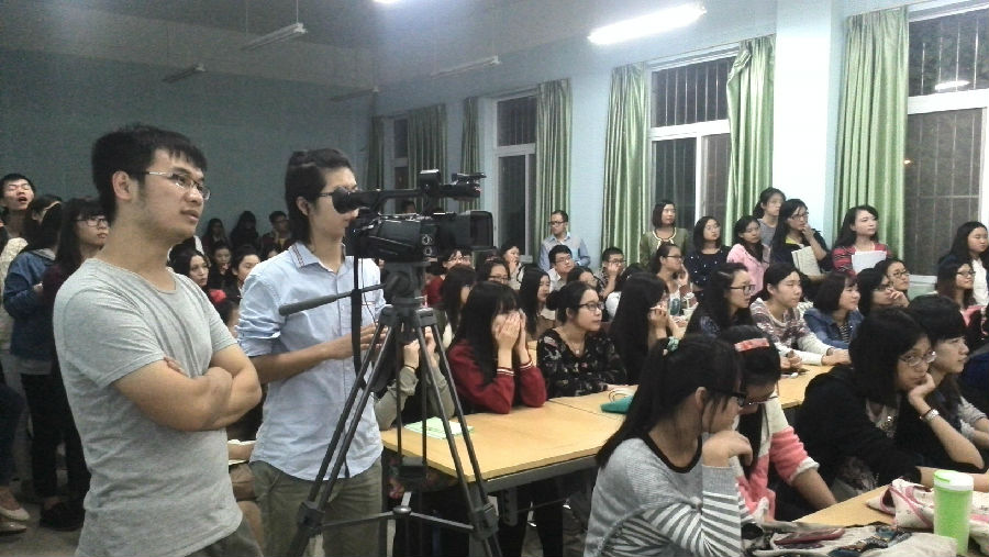 两个多小时的全英文学术讲座对在座的同学们来说,确实是一个不小的挑战。两位负责翻译的同学也走到人群中为同学们进行及时的中文翻译。不少同学表示听完此次讲座,感觉自身的英语水平和对传播学理论的认知都得到了一定提升。