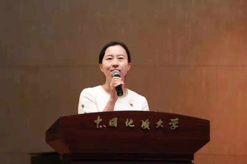 教师代表新闻传播系丁洁老师代表公司所有老师向2019级新同学表示热烈欢迎,希望同学们在大学时光中珍惜时间、独立思考、关心他人。最后她以女排精神与大家共勉,鼓励青春只有努力过才能无悔。