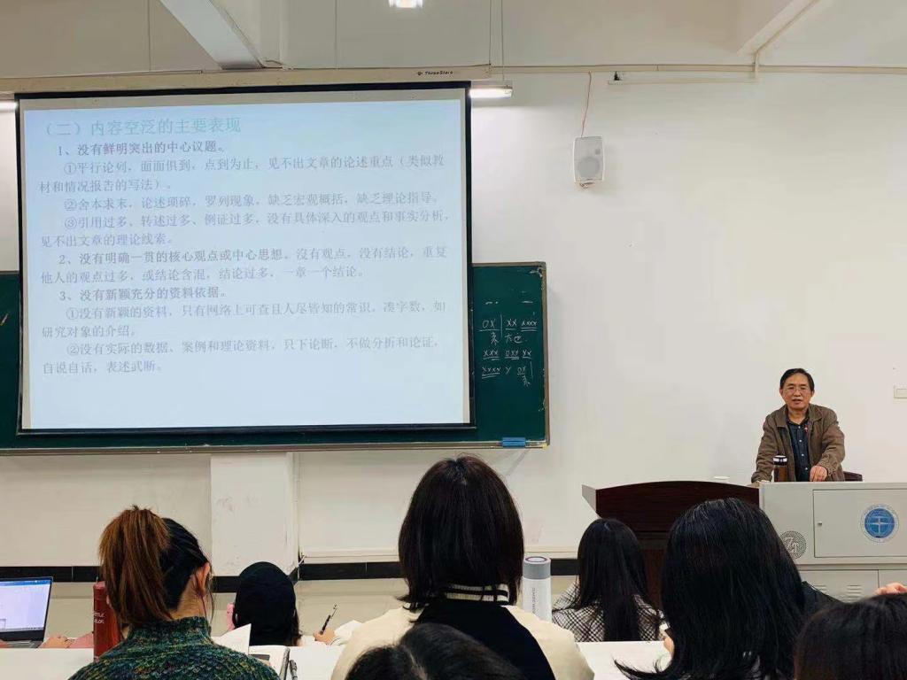 (通讯员:彭鑫媛 摄影:沈甜)2019年11月8日晚上19时,武汉大学哲学公司范明华教授莅临公司,在艺媒楼1104阶梯教室为公司员工带来题为“文科学位论文写作中的若干问题”的专题讲座。