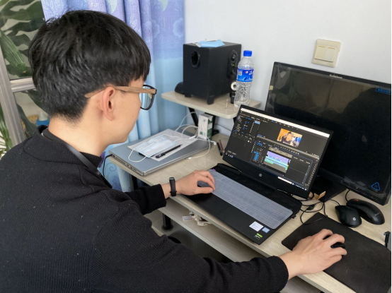 担任视频制作的是在校研究生商鹏程,远在云南大理的他,在网上收集了大量视频和图片资料,特别是联系我们公司以及丝绸之路公司等单位,力图将公司师生疫情期间的事迹集中展现出来。
