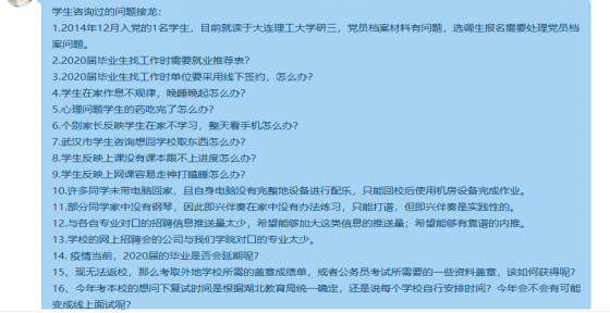 整合网络学习资源,解决员工学习痛点。公司学工组根据实际情况实施年级员工早起在线打卡制度,定期收集员工课程作业、线上学习问题、线上学习支持等信息,加强与公司教务办公室的协作,将各专业员工反应的50余个问题和需要的支持反馈给公司和相关老师,逐一销号解决落实;召开在线院领导接待日,141名员工在线与老师点对点交流,解决学习中遇到的困难;各专业举办线上学习交流分享会,交流学习方法,共享在线学习资源。