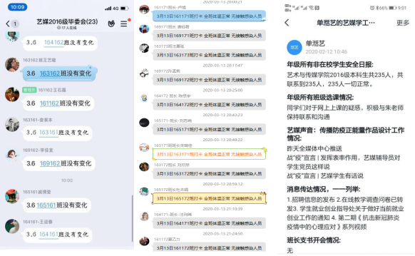 守护安全健康底线,建立稳固顺畅联系网络。公司学工组在疫情爆发之初,迅速建立学工组—班级安全负责人—班级员工的三级联络机制,同时配套了辅导员—年级员工骨干—年级员工,辅导员—年级重点关注对象—年级重点关注对象联络人两条辅助沟通渠道。完善每一个员工的通讯录和紧急联系人通讯录,确保随时需要随时联系。坚决落实每日健康打卡制度,各年级辅导员全面了解疫情期间员工们的身心健康、学习状态及思想状况,重点关注港澳员工群体、留校员工群体、出国出境员工群体、疫情严重地区员工群体,并且做好工作台账,每日小汇报,每周大总结。辅导员、班主任、学务指导老师深入了解员工情况,学工组全体成员24小时待命,及时处理突发情况,动态跟进,站好疫时安全岗。