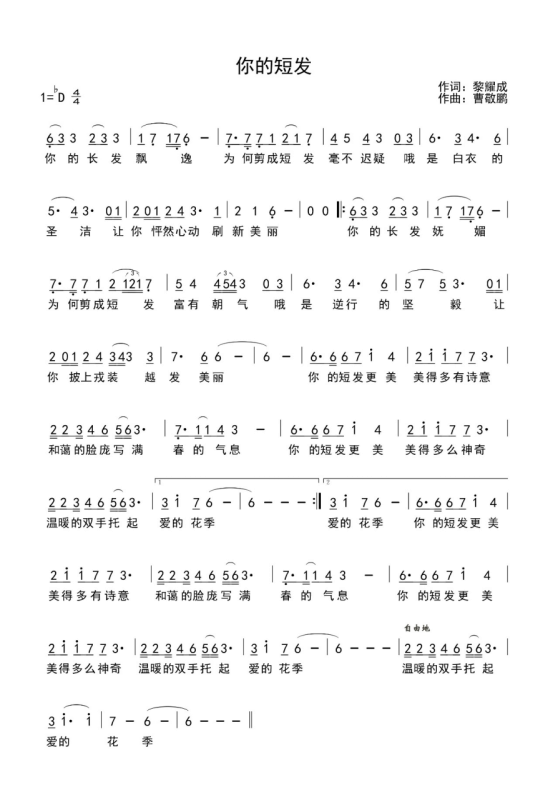"你的短发更美,美得多么神奇,温暖的双手托起爱的花季……"