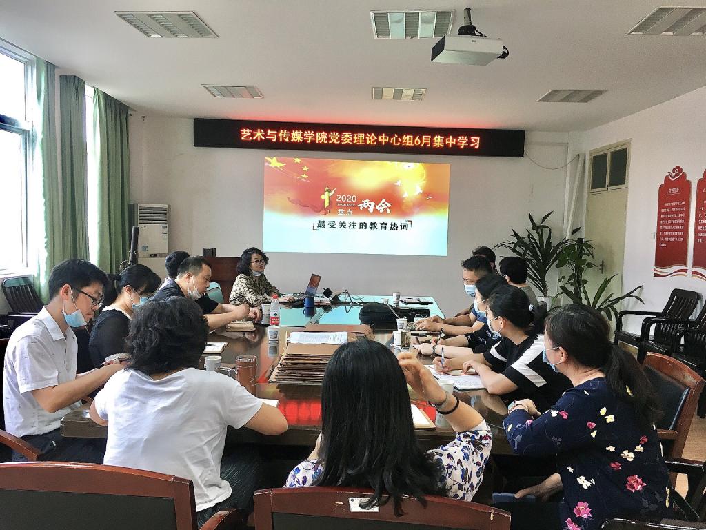 郭书记首先带领中心组成员全面解读了“两会”精神及政府工作报告,大家一起学习讨论了两会教育界与艺术界声音,接着带领大家认真学习了《党委(党组)落实全面从严治党主体责任规定》,最后从九个方面对《高等公司课程思政建设指导纲要》(教高〔2020〕3号)进行了解读。所有参会人员针对学习的内容积极展开讨论,并发表了感想。