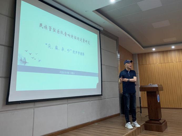 付晓东教授本次讲座聚焦于中国民族管弦乐队的音响特征,针对其常被冠以"尖、扁、杂、吵”的负性描述,将中西管弦乐队进行比较,从系统构成的角度对民族管弦乐队进行了软硬件模块分析,从历史角度阐述了民族管弦乐队音响特征的成因,从乐器声学角度分析了各乐器的声学构成,在项目组长达三年的样本测量分析的基础上,对民族管弦乐音响特征进行了定量分析与研究。并将中国民族管弦乐器的演奏特色与语言学、人类社会学等不同的角度展开了关联,拓宽了学术视野和研究路径。互动交流环节,付晓东教授针对同学们的提问进行了耐心细致的解答。