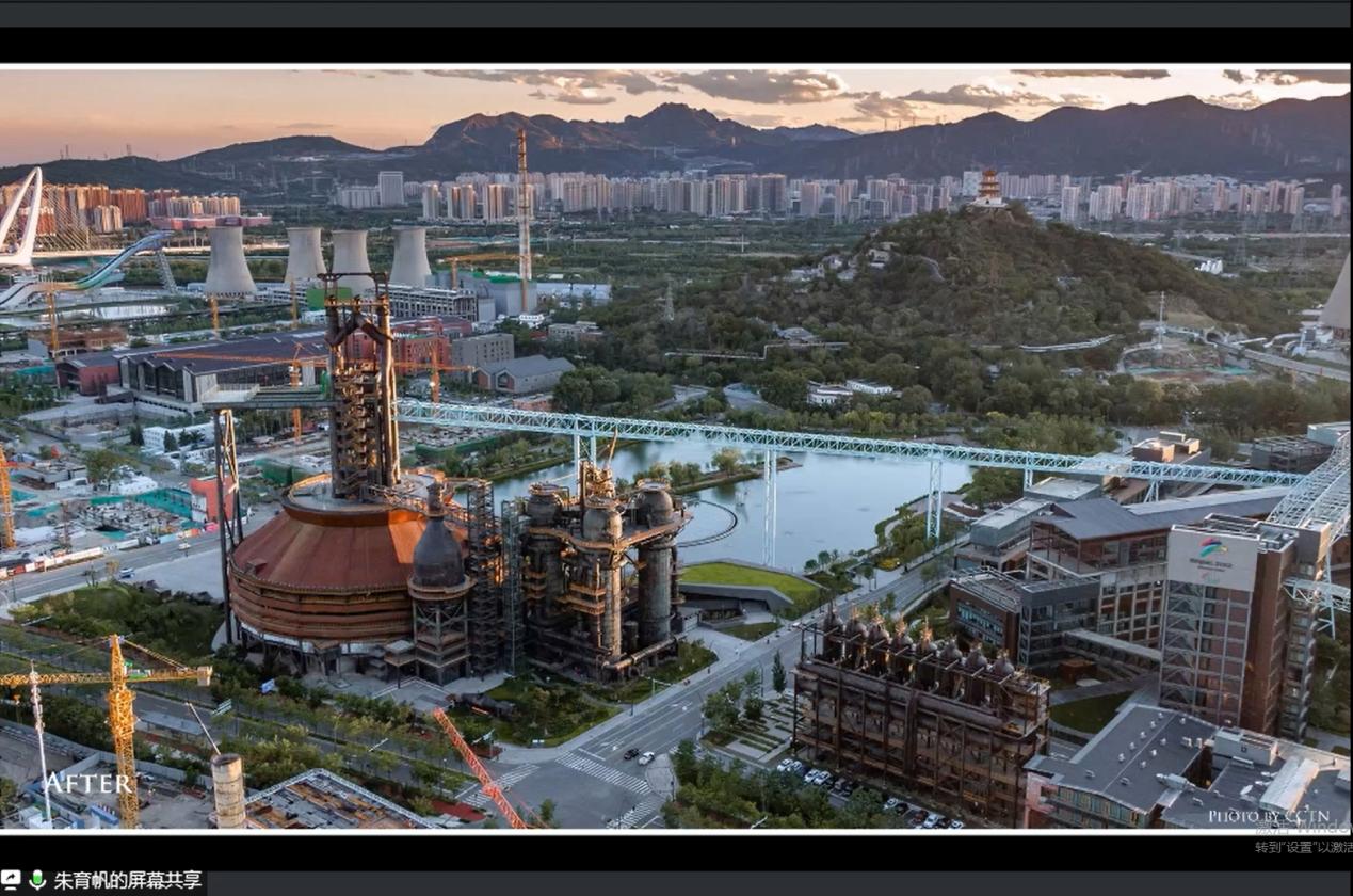 本次讲座朱育帆教授针对“金安桥段——中国首钢后工业景观笃行之思”这一主题生动清晰地阐述了创作理念及设计内涵。朱教授以科学革命、启蒙运动、工业革命以及大机器工业时代景观代名词为切入点,讲述了后工业社会产业转型周期对人类文明进程社会景象产生重要影响和深刻改变。工业力量与自然力量在原始之间以一种匹配的关系存在,工业大机器的恢宏带给人的震撼与大自然同频,因此对工业习性特点的了解对今后从事相关专业工作均能得到启发。北京首钢的成功转型作为中国后工业时代转型的透镜有着标志性和典型性,朱教授提到,后工业场地被废弃的历史相较于那些文物动辄成百。上千年的历史似乎是无法相提并论的,是“最年轻”的那部分历史,正是因为这种“年轻”,从物质媒介到人,感受记忆的载体还大都没有完全失去,也正是因为这种“年轻”,它们的价值一度被极度忽视,所以我们看到的是设计之前那些后工业场地历史对象从完整的存留到完全的“毁尸灭迹“之间差异化极大的状态。有趣的是,设计之后的这些遗存的状况也同样存在从被完整的存留到完全的“毁尸灭迹“之间全波段的可能,而这时做出选择的缘由归根到底是因为设计对于其价值的判断。从这个角度看“后工业景观”是探讨历史与设计关系的一个最具代表性和全景式的设计类型。