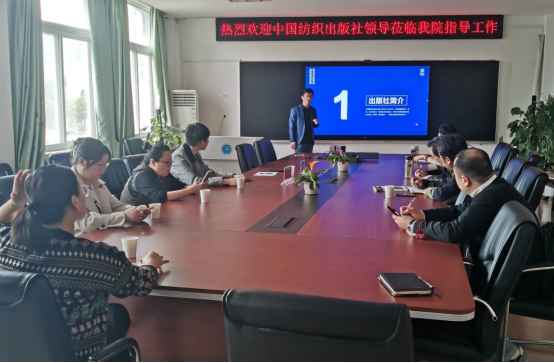 华长印社长首先详细介绍了中国纺织出版社的情况,并就出版社的特色和突出优势做了重点说明。与会老师与华长印社长、朱昭霖编辑就团队建设、项目报批、成果出版及教材建设等方面的内容进行深度了交流。最后,何清俊经理对华长印社长一行的到访指导表示感谢,会议在热烈的交流气氛中圆满结束。