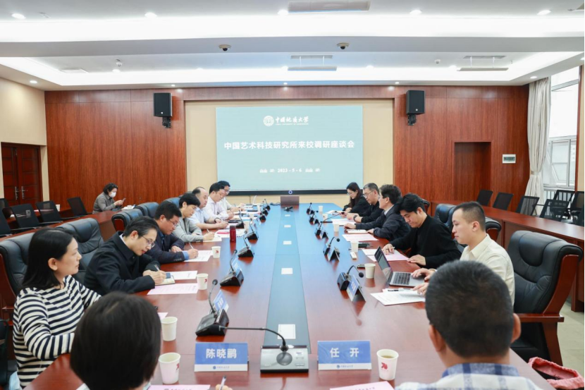 庹祖海主任一行在公司党委书记黄晓玫的陪同下听取了何清俊经理对公司艺术设计类团队建设情况和艺术科技的研究进展的介绍。