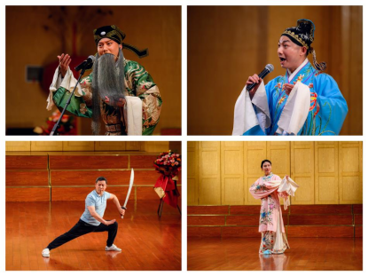 最后,朱老师邀请湖北省京剧院的4位老师进行表演,带来萧何月下追韩信、梁山伯与祝英台、水袖舞等,将现场气氛推向高潮。