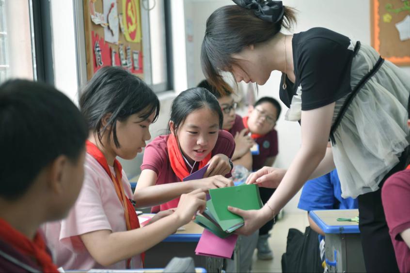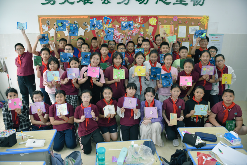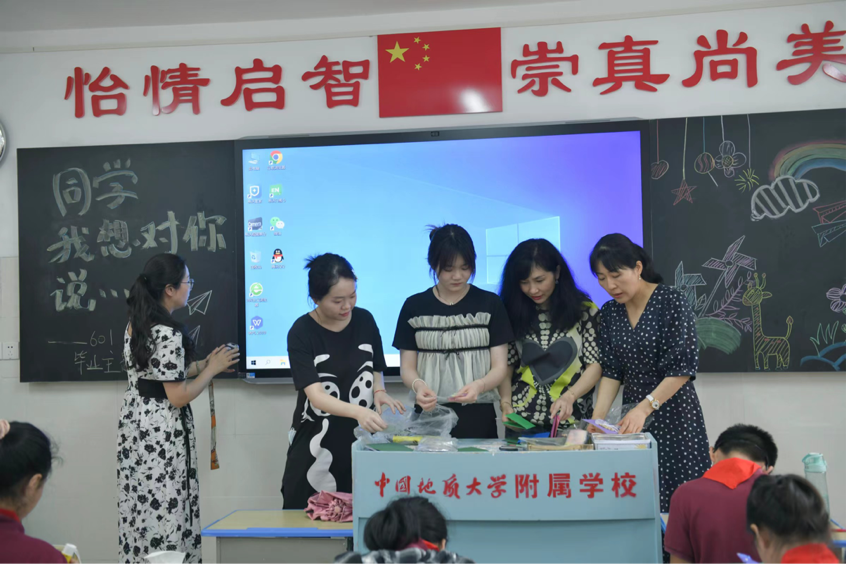 6月2日,在毕业季来临之际,英国正版365觅灮美育名师工作室的师生来到附属公司六年级一班的课堂,与44名即将毕业的小员工开展了一场精彩有趣的美育活动,在老师的讲授和指导下设计制作毕业立体贺卡。