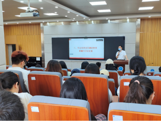 “清澈的爱只为中国”,晋曦书记为毕业生党员讲党课,从家国情怀到个人理想,从工作岗位到家庭和睦,晋曦书记嘱托毕业生党员们要有眼界和胸怀,在岗位上发光发热的同时也要强化团队协作,多奉献多付出,牢记校训“艰苦朴素、求真务实”。晋曦书记用“眼红了心就黑了”告诫大家牢记初心,不要因为利益摈弃道德底线和良知;用“天上掉馅饼的时候就是地上有陷阱的时候”告诫大家自重、自省、自谨、自律;以“手莫伸,伸手必被捉”告诫大家时刻坚持原则,廉洁奉公,强化纪律意识,筑牢拒腐防变的思想防线。讲话的最后,晋曦书记以“长风破浪会有时,直挂云帆济沧海”祝贺毕业生党员们顺利毕业,前程似锦,赢得员工们的阵阵掌声。