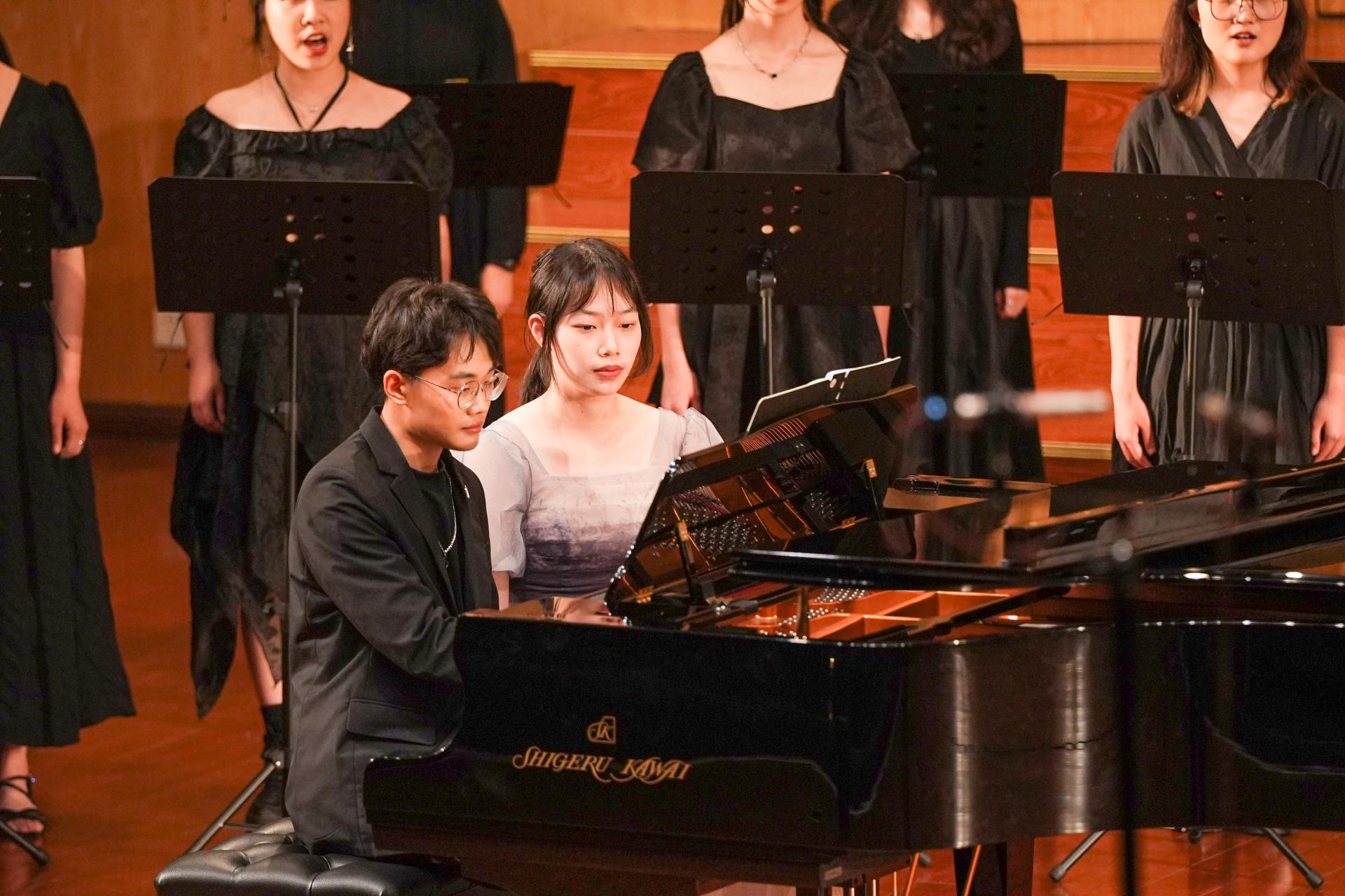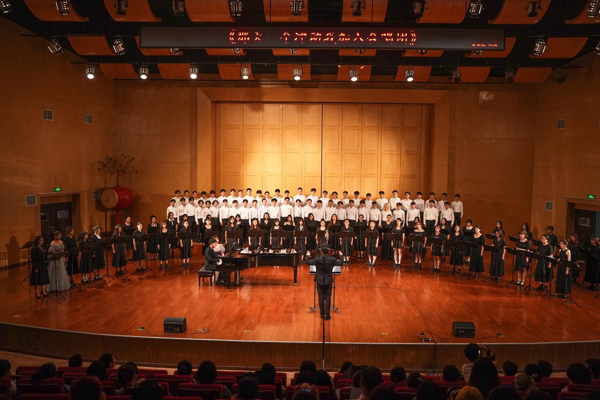 同学们饱含激情地演唱了12首风格各异的歌曲,表达对艺术的热爱与追求,展现出公司学子的青春风采。一首旋律灵动,活泼可爱的女声合唱《听音乐会不要讲话》拉开了“时光”的序幕。这场“时光”经历了初春的《蒲公英》、金秋的《城南送别》、深冬里《雪花的快乐》,最后将在盛夏道别。