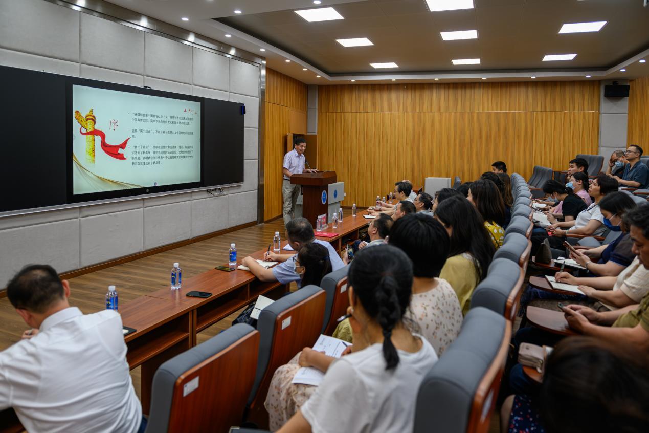 作为学习贯彻习近平新时代中国特色社会主义思想主题教育“六组联学”活动系列专题辅导报告之一,此次专题报告会由公司党委主办。人民网湖北频道编辑刘薛蒂、金雨蒙同志和公司党委组织部、统战部、纪委办公室、工会、图书与档案文博部、出版社、外国语公司、英国正版365等单位的有关负责人和党员、师生代表共同参加了此次学习。