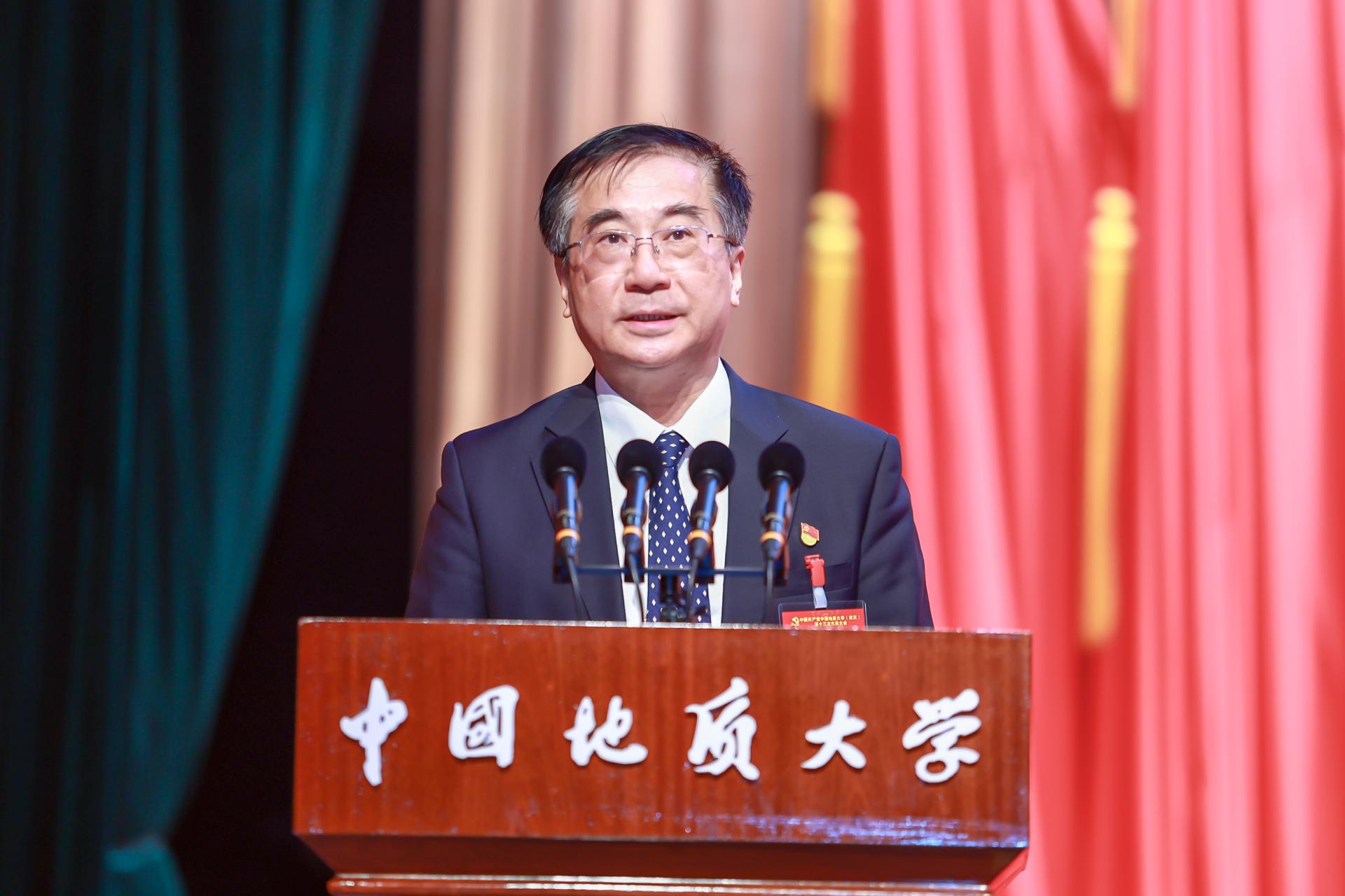 报告指出,党的二十大和习近平总书记给地质工作者的回信赋予科教事业新的更重的时代责任、赋予地质工作新的更高的历史地位、赋予地大新的更崇高的光荣使命:坚守为党育人、为国育才,始终与党同心、与国同进、与民同行,培养担当民族复兴大任的时代新人;服务美丽中国、宜居地球建设,助力推动构建“人与自然生命共同体”和“人类命运共同体”;矢志创新策源、追求卓越,打造地球科学领域人才高地、创新高地,引领推动地学教育和研究范式创新;聚力勇闯新路、创建一流,扎根中国大地,遵循教育规律,蹚出学科特色型大学创建中国特色世界一流大学的新路。