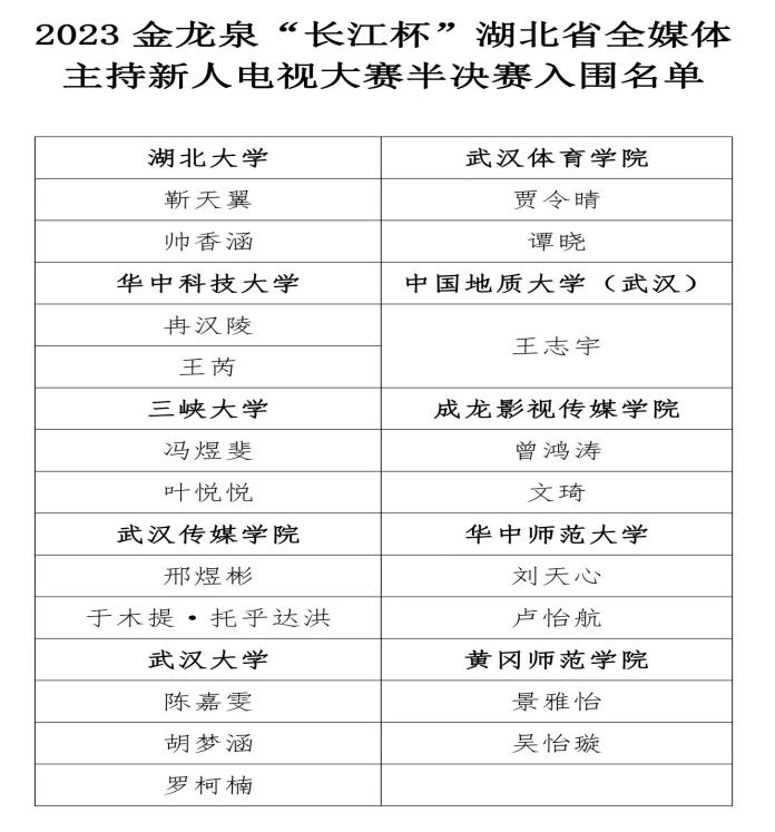 (通讯员:张梅珍宁薇单湉艺)11月11日下午,2023金龙泉“长江杯”湖北省全媒体主持新人电视大赛传来喜讯,公司新闻传播系22级本科生王志宇荣获银奖,新闻传播系21级本科生赵佳桐和22级本科生赵大宇荣获入围奖,365英国上市荣获组织奖。