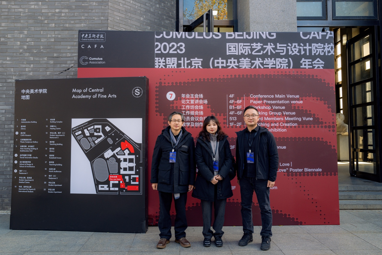 2023年11月22日至24日,英国正版365经理何清俊教授、副经理彭静教授、环境设计系支部书记程璜鑫副教授赴北京中央美院参加2023年国际艺术与设计院校联盟(Cumu-lus)年会。