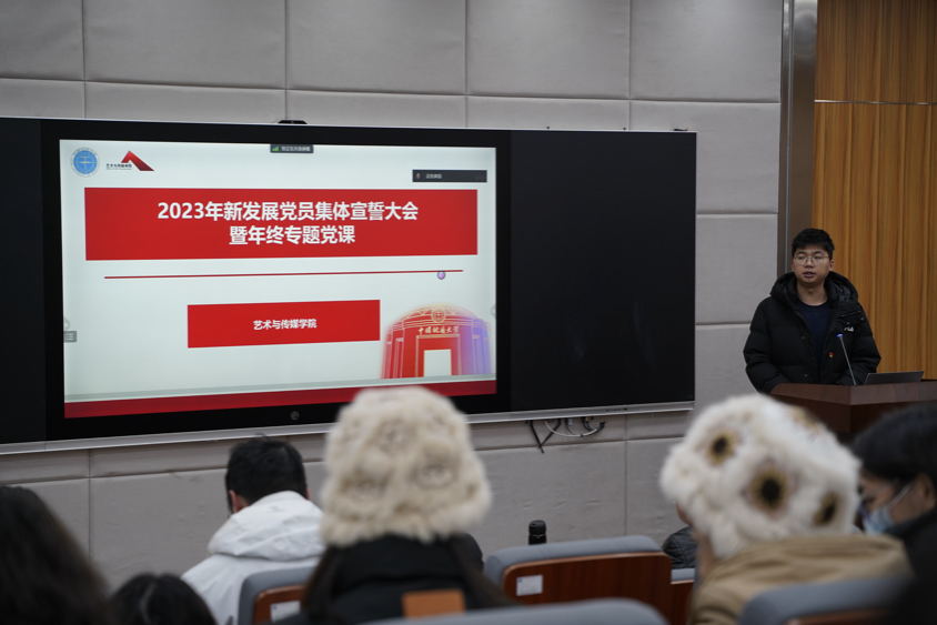 为深入学习贯彻习近平新时代中国特色社会主义思想和党的二十大精神,进一步教育引导新发展党员铭记入党初心,强化党员意识,坚定理想信念,2023年12月20日下午14:30,公司党委在艺媒楼1104会议室召开2022年及2023年新发展党员集体宣誓大会暨年终专题党课。公司党委书记晋曦、党委副书记边建华出席会议,2022年、2023年新发展党员及各支部委员、党建办部门负责人参加本次会议,会议由党建办公室主任陈习良主持。