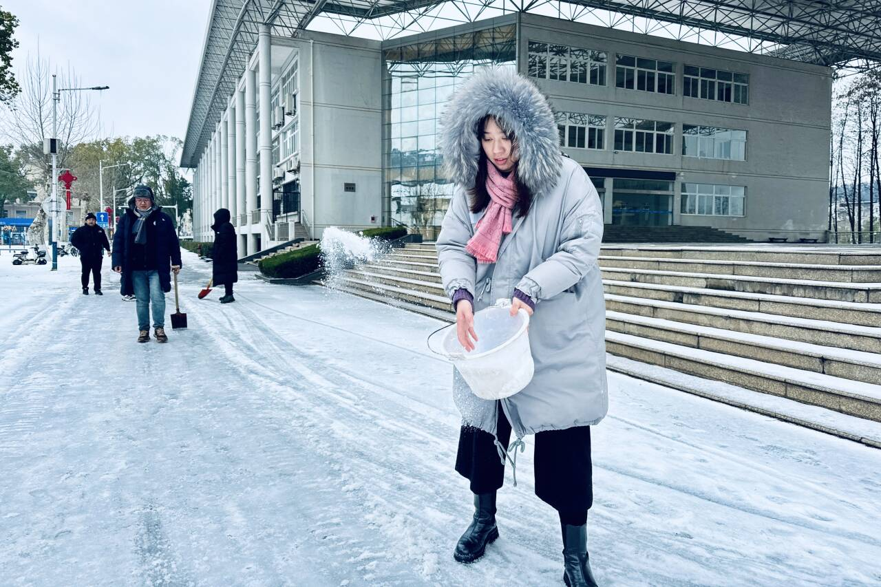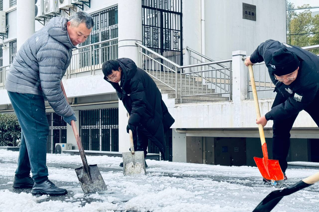 虽然天寒地冻,老师们却干劲十足,经过3小时的撒盐、挥锹、除冰、扫雪,一条可供人车通行的百米平安路、暖心路在北区综合楼至英国正版365楼前的道路上和中庭里显露出来……同志们的劳动身影成为冰天雪地里的一道亮丽风景,老师们的辛勤付出只为迎接同学们平安归来。