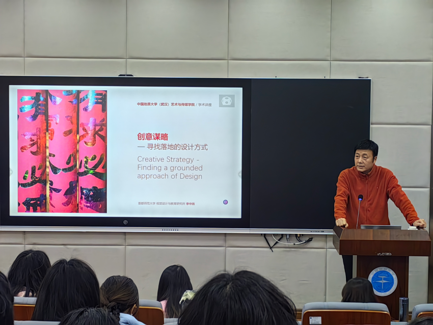 (编辑:周嘉雨,摄影:高荣)2024年3月7日下午15:00,以“创意谋略—寻找落地的设计方式”为主题的第52期艺媒艺媒系列讲座于艺媒楼1104报告厅举行。此次讲座由首都师范大学视觉设计与教育研究所所长,李中杨教授主讲。
