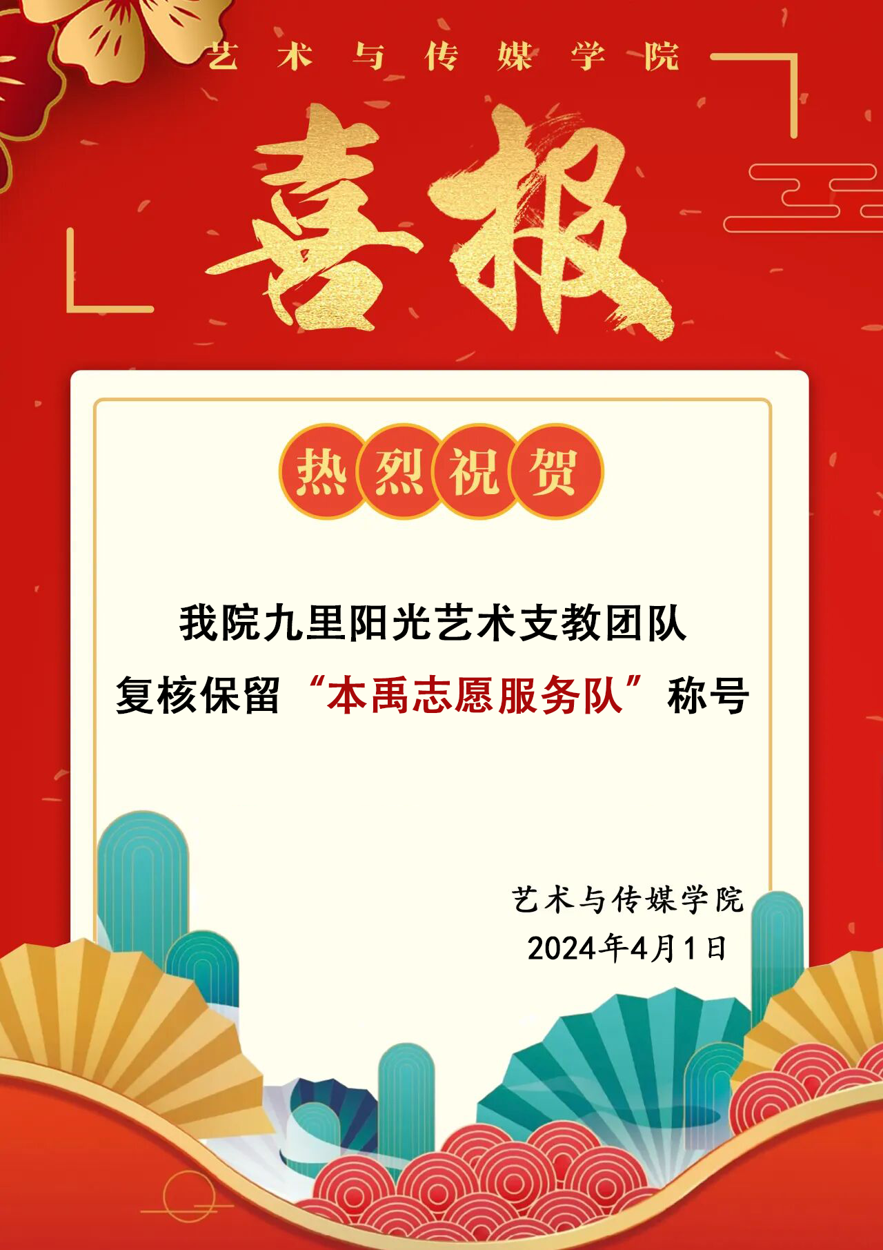 近日,湖北省志愿者协会下发《湖北省“本禹志愿服务队”2023年度拟命名和2014—2022年度复核拟保留命名名单公示》。根据评审结果,拟命名2023年度湖北省“本禹志愿服务队”50支,2014—2022年度复核拟保留命名湖北省“本禹志愿服务队”150支。公司九里阳光艺术支教团队经复核保留湖北省“本禹志愿服务队”称号。