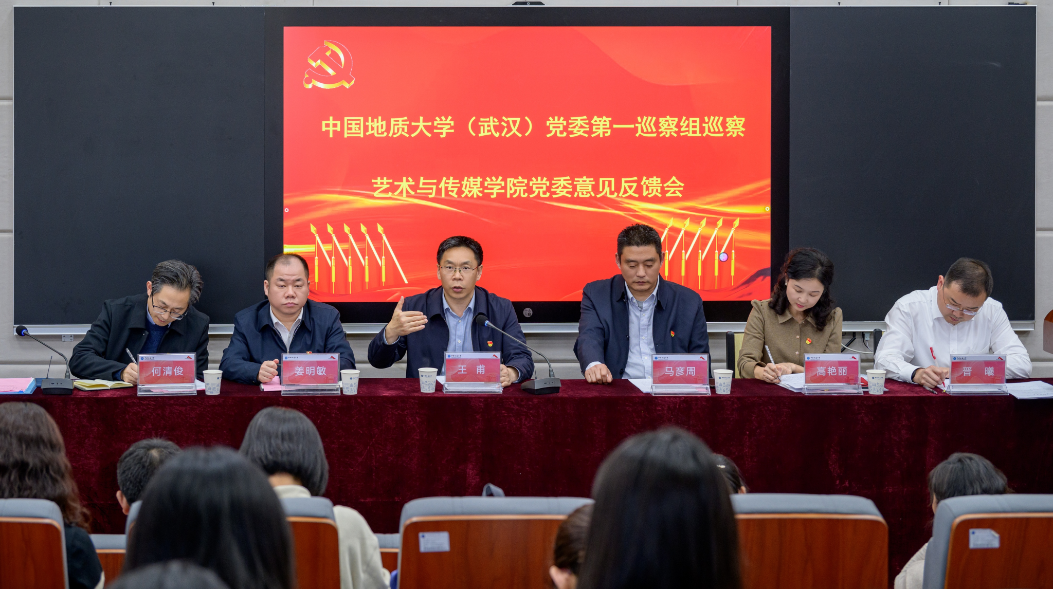 公司党委常委、副书记王甫同志,巡察组组长地球物理与空间信息公司党委书记马彦周同志,副组长环境公司党委书记姜明敏同志和工程公司党委副书记高晓东同志,巡察办副主任高艳丽同志,巡察组成员丁为同志、刘琴同志、李向南同志、王碧同志、刘筱同志、闫维蓉同志,公司党委领导班子全体成员出席现场反馈会议,公司全体教职工、民主党派人士和员工代表等列席会议。