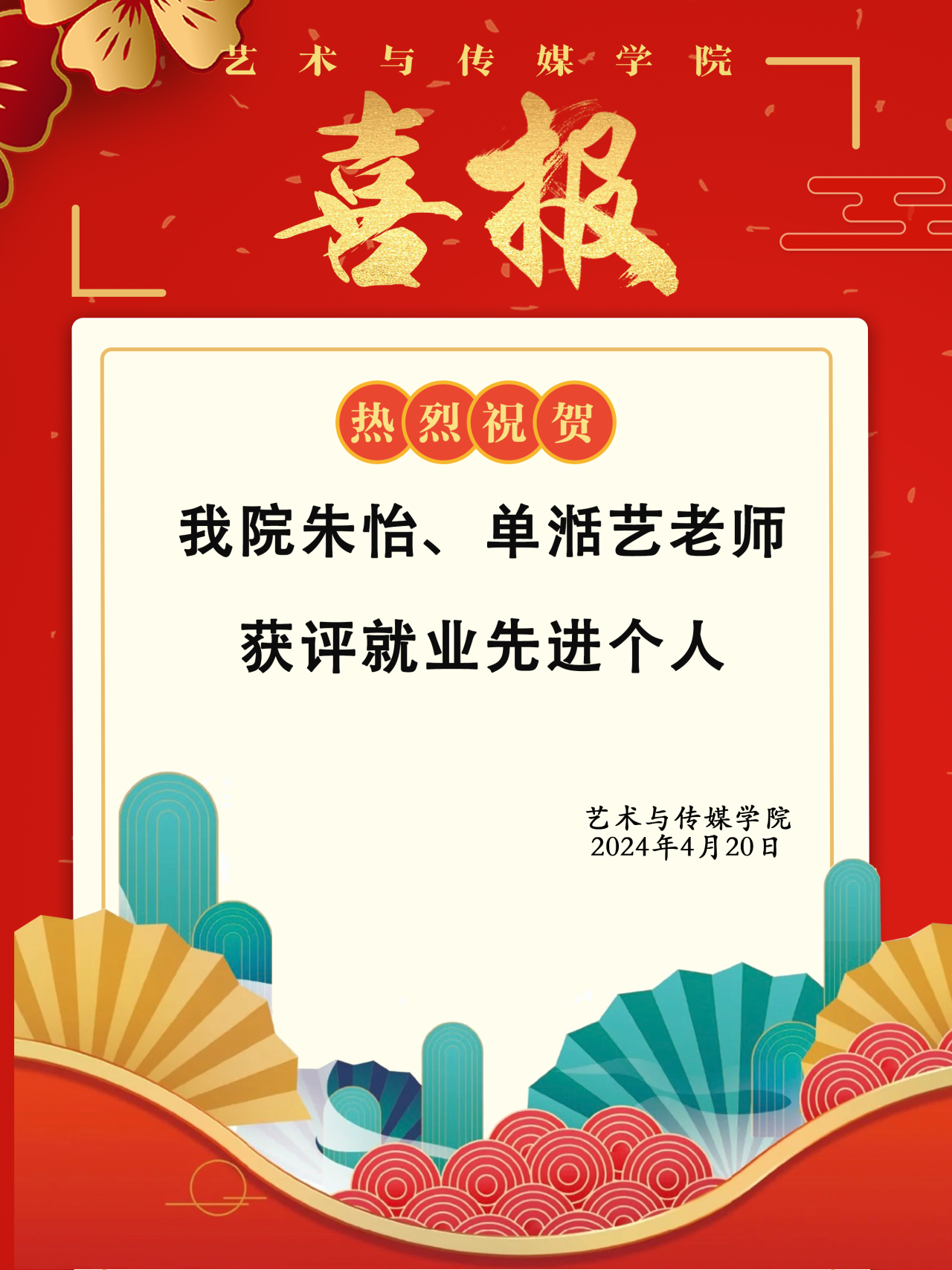 喜报 | 热烈祝贺公司朱怡、单湉艺老师获评就业先进个人!