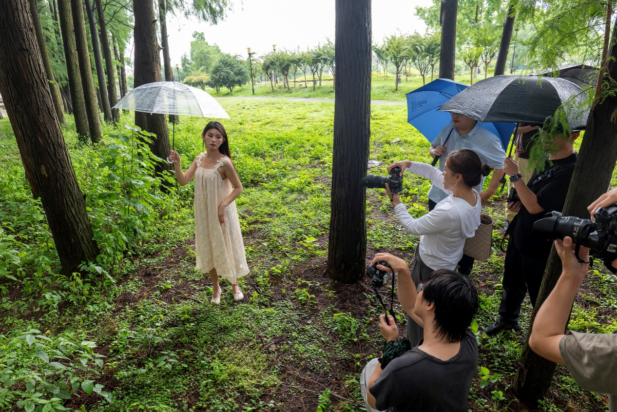 在分享结束之后,长江日报城市摄影队导师带领大家在校内开展人像拍摄创作,尽管下雨,但是这不能浇灭大家拍摄创作的热情,老师同学们纷纷拿起相机跟随导师在雨中学习人像拍摄。