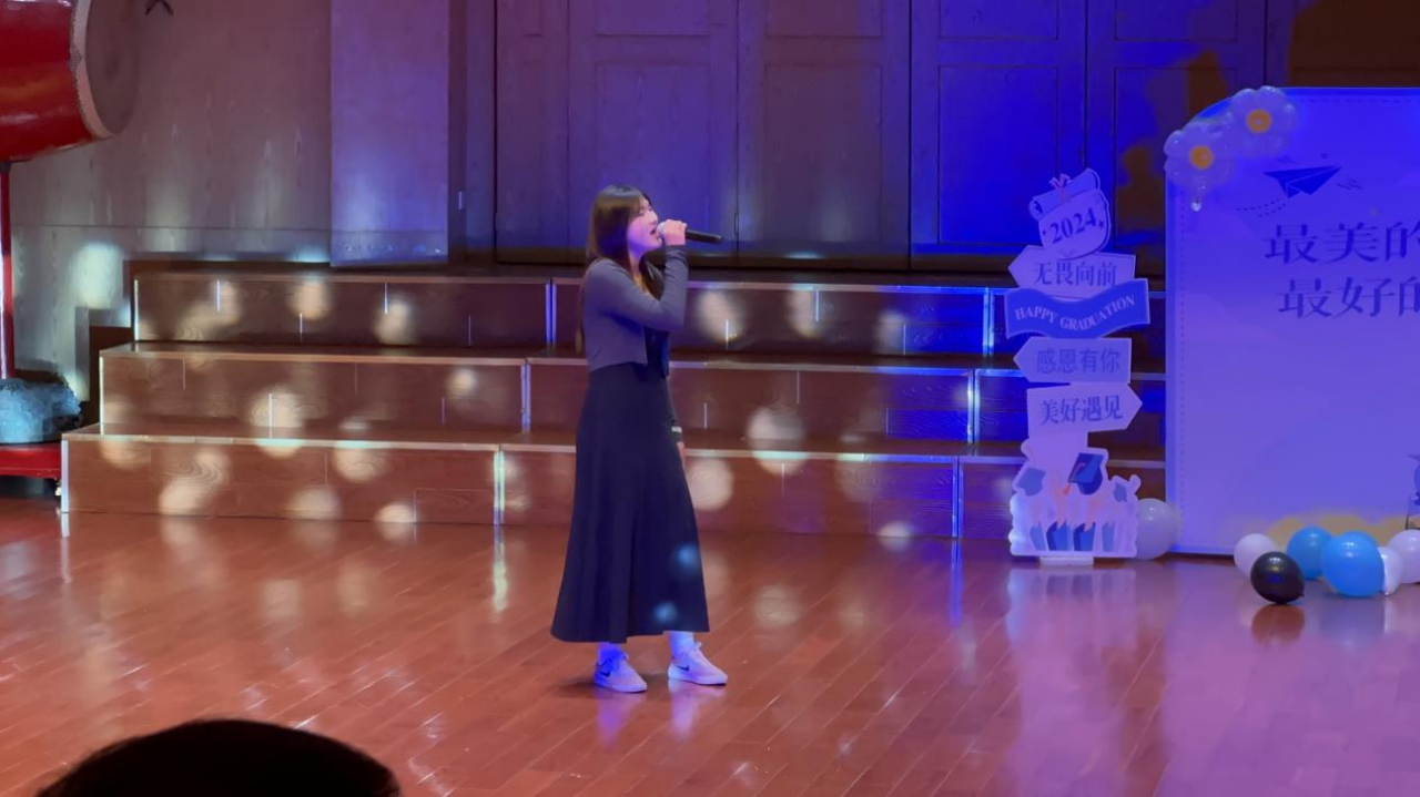 魏绮婷带来独唱《离歌》,以其深情的演绎让人们感受到了离别的忧伤与不舍,纪念着想留不能留的员工时代。歌声感叹着对未来的不确定和对过去的怀念,让同学们更加珍惜眼前的每一刻。