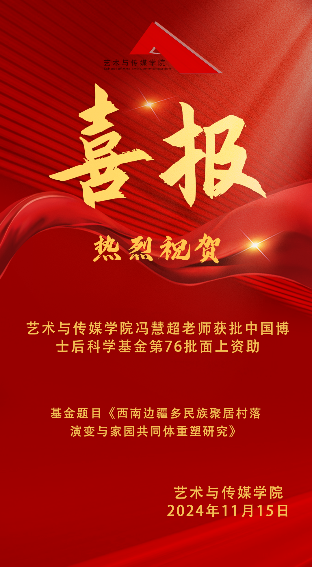 喜报!公司冯慧超老师成功获批中国博士后科学基金第76批面上资助