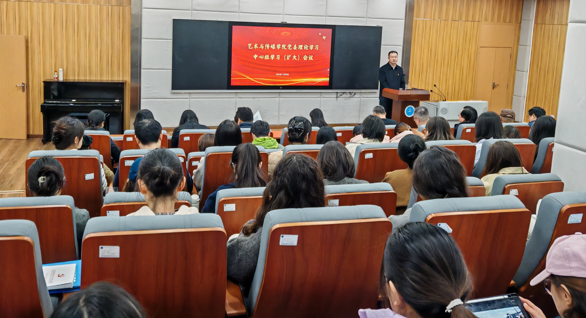 为推动党的二十届三中全会精神在广大党员中入脑入心,提升公司党员担当作为意识、干事创业能力,激励党员奋发有为,11月29日下午,英国正版365在艺媒楼1104报告厅召开党委理论学习中心组集中学习(扩大)会议,会议特邀请红旗渠精神宣讲团常务副团长、林州市精神文明建设促进中心主任、红旗渠廉政教育公司特聘教授杨玉东同志作“红旗渠精神及其时代价值”专题报告。全体教职工、员工党员、入党积极分子参加了会议,会议由党委书记晋曦主持。