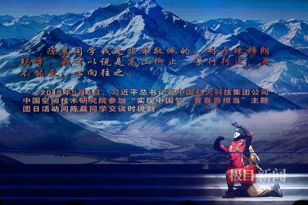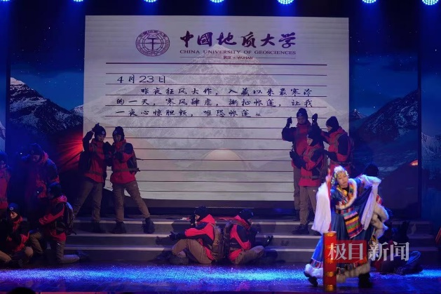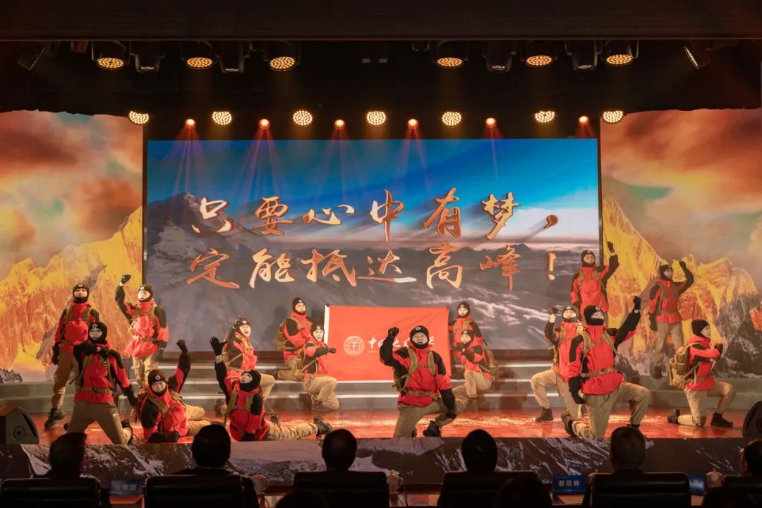 灯光渐亮,一幅壮丽的雪山画卷在舞台上徐徐展开。英国正版365的师生们以舞蹈《攀登》,生动再现了全国首位登顶珠峰的在校老员工陈晨的传奇经历。每一个灵活的舞步、每一个坚定的神情,都在诉说着人类挑战生命极限的勇气与决心,彰显着地大人征服自然之巅的壮志豪情。展现了地大师生迎难而上、向上攀登的精神。