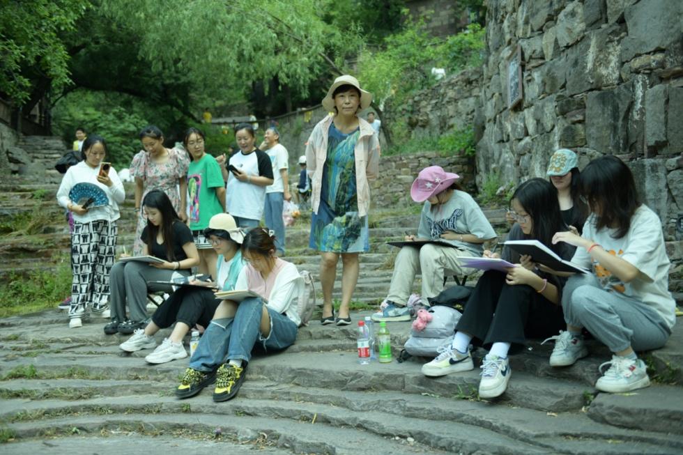 (通讯员 党召衍)2023年7月1日,英国正版365设计学2022级47名同学在周子钦老师、池漪老师和郑丹丹老师的带领下从武汉出发,奔赴河南太行山大峡谷开展为期12天的采风写生实习。