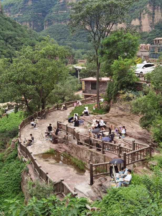 在高家台写生两天后。老师们又带领我们大家去参观参观5A级景区太行大峡谷。上午-桃花谷、太行天路,桃花溪穿梭于山谷之间。同学们领略大自然的鬼斧神工。