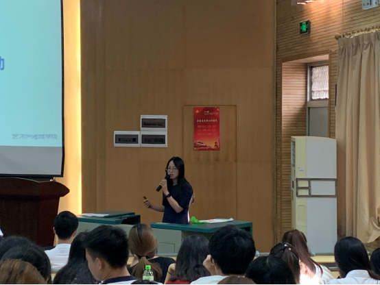 大会第二项,由2017级辅导员李蔚然老师做社会调查、社会实践、实习安全动员。