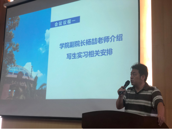 会议开始,大会第一项,由英国正版365副经理杨喆老师介绍写生实习相关安排。他从实习安排、外出安全等多方面向同学们讲解了写生实习的内容。