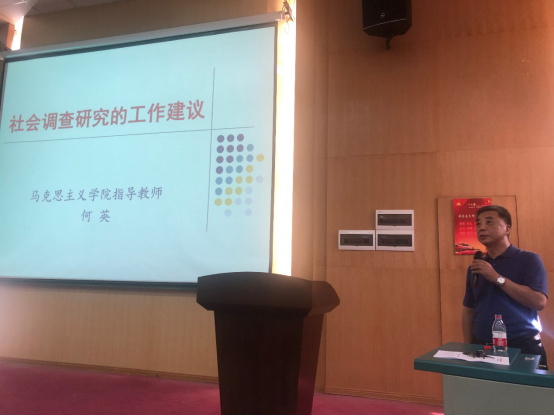 大会第三项,由马克思主义公司副教授何英老师做《怎样做好社会调查》讲座。