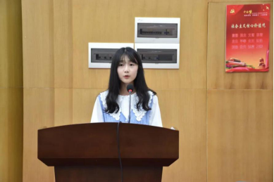 典礼第五项,由2020级研究生新生代表肖明珠同学发言,她认为读研是一种磨砺,可以提高自己的知识水平和加深学科了解,享受人生中为数不多的沉浸式学习时光,并发出呼吁:牢记国家担当,责任担当,使命担当,不负韶华,在公司提供的优良环境下,脚踏实地地拼搏,积极勇敢地创造,做乘风破浪的“地大人”。